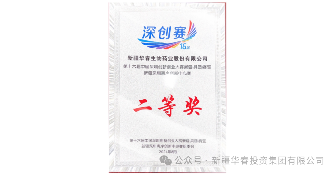 10月21日,第十六屆中國深圳創(chuàng)新創(chuàng)業(yè)大賽新疆(兵團)賽頒獎典禮暨深圳-新疆(兵團)場景創(chuàng)新對接會在新疆首府烏魯木齊隆重舉行。本次大賽旨在深化“四方合作”機制,促進異地融合,為深圳科創(chuàng)企業(yè)與新疆對接橋梁。經過激烈角逐,新疆華春生物藥業(yè)股份有限公司(簡稱:華春藥業(yè))以其創(chuàng)新能力和創(chuàng)新藥項目,榮獲二等獎。