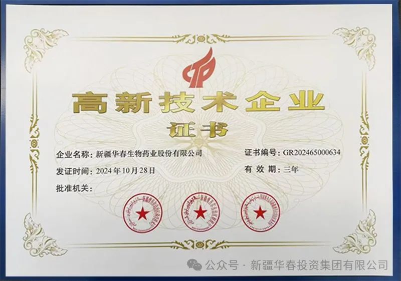 新疆華春生物藥業(yè)股份有限公司(簡(jiǎn)稱:華春藥業(yè))經(jīng)過(guò)嚴(yán)格評(píng)審與考核,于近日正式獲得由自治區(qū)科技廳、自治區(qū)財(cái)政廳和自治區(qū)稅務(wù)局聯(lián)合頒發(fā)的高新技術(shù)企業(yè)證書(shū)。這標(biāo)志著華春藥業(yè)在科技創(chuàng)新能力、研發(fā)投入力度、技術(shù)成果轉(zhuǎn)化等方面,成為行業(yè)內(nèi)領(lǐng)先的創(chuàng)新型企業(yè)之一。